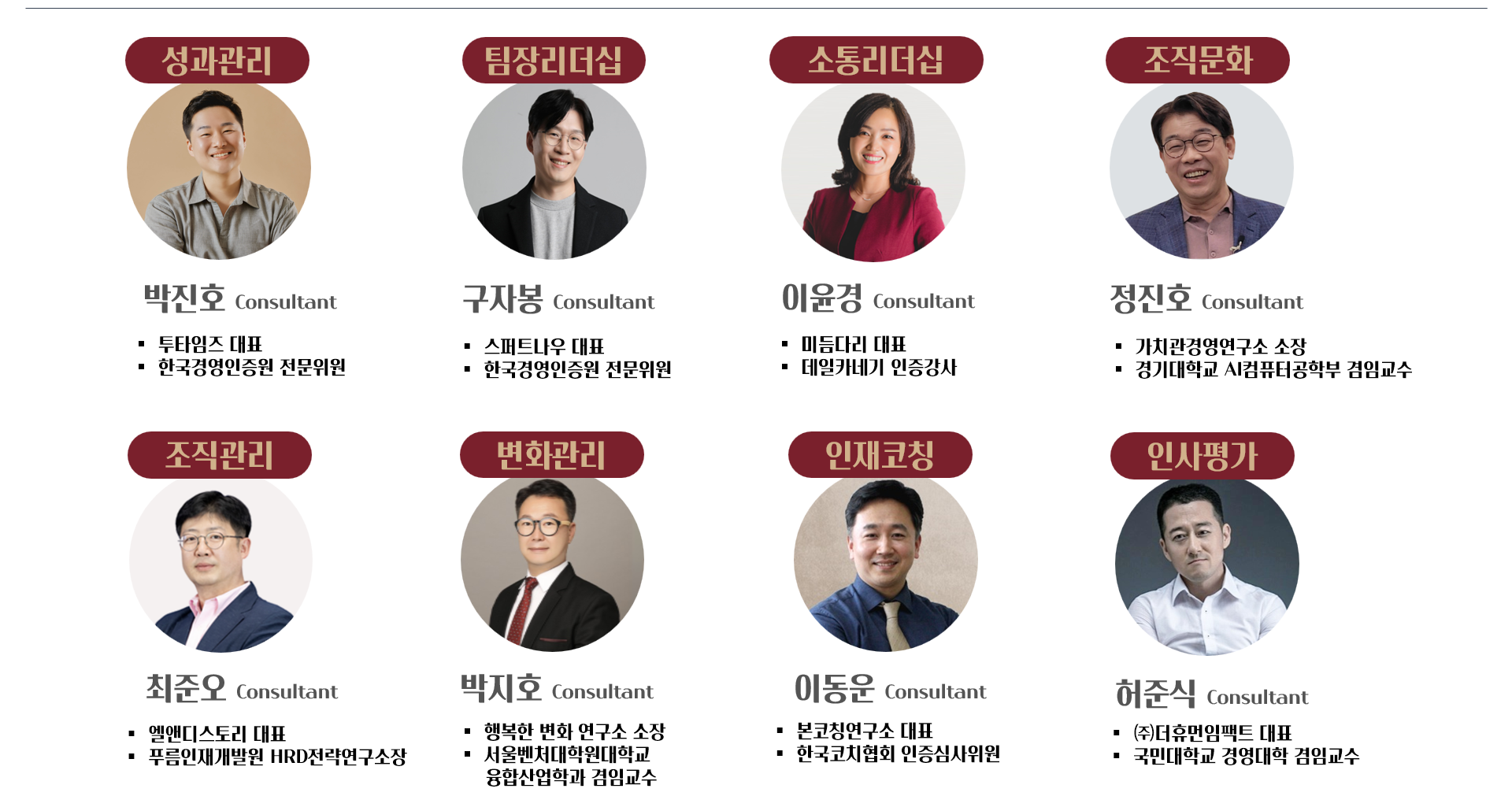 투타임즈는 고객사의 성과관리 컨설팅을 보다 잘 지원하기 위해 수년간 HR 각 영역에서 훈련된 전문가들과 협력하여 프로젝트 베이스(Project base)로 컨설팅을 진행합니다.